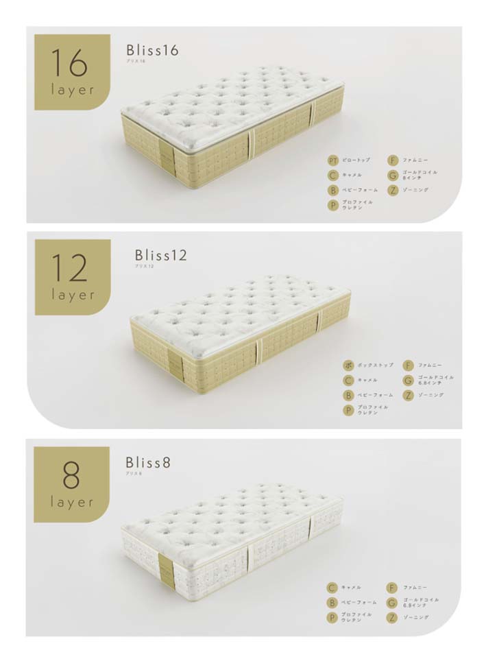 生み出す「天然素材」と、快適な睡眠環境(寝姿勢/体圧分散性/通気性など)をつくる「ウェルネス素材」を重ね合わせることで、心地よく快適な寝心地を実現。