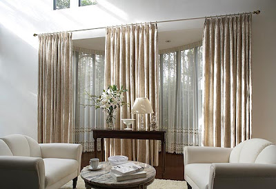 しかし、大型窓にあわせた長いポールに、大きなカーテンを吊るすと