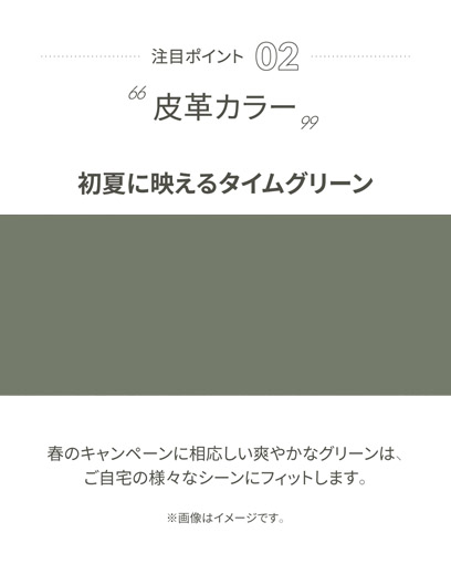 春のキャンペーンに相応しいさわやかなグリーン色は、様々なシーンにフィット。