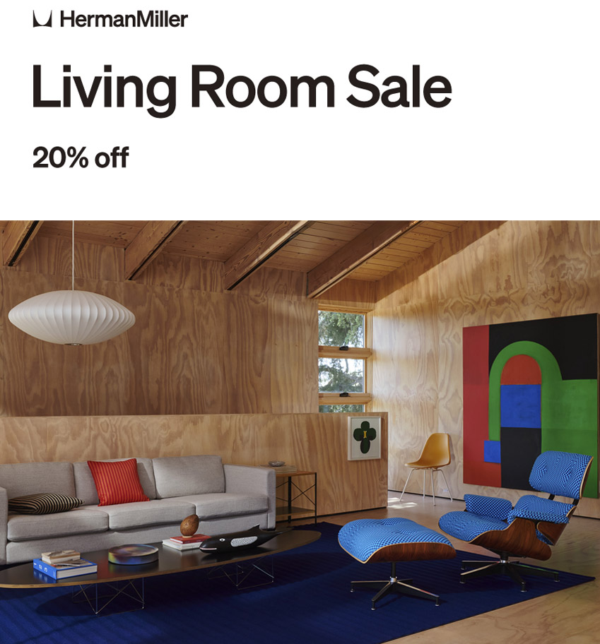 リビングルームセールを開催中。対象のリビングルームデザイン製品を期間中20%OFFにてお求めいただけます。