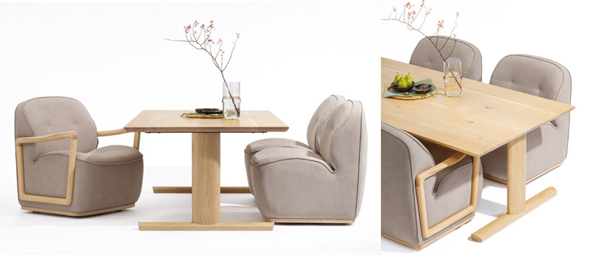 食事や団らんの場でも自然な姿勢を保ち、長時間でも快適な座り心地を実現しました。