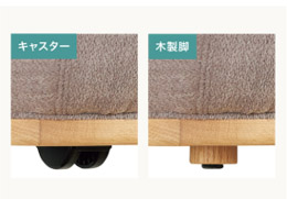 生活シーンに適した脚タイプ『キャスター』『前木脚/後ろキャスター』『総木脚』の3種類からお選びいただけます。