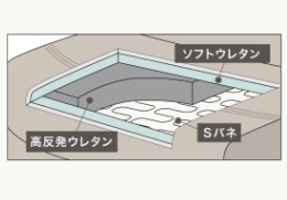 Sバネ+積層ウレタンというソファと同じクッション構造を採用。長く座っても疲れにくく、ゆったりとした幅広サイズなので 全身をしっかりと支えてくれる安心感のある座り心地です。