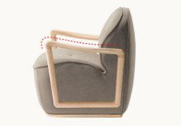 程よい曲線で滑らかな触り心地の『ロの字型フレーム』。複雑な造形が肘や手に馴染みやすく、天然木ならではの温もりを感じます。