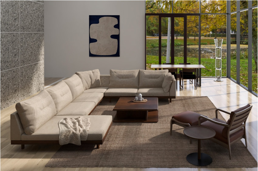 DANISHローソファの持つ座面が低く、空間を広く使える点や、足を伸ばせる快適さはそのままに、