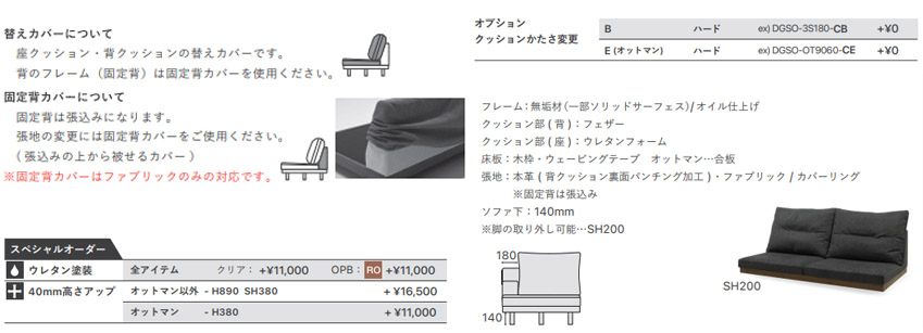 ●クッション部:( 背):フェザー、( 座):ウレタンフォーム