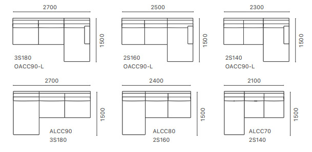 (アームレス)3シーター180、2シーター160、2シーター140、1シーター90