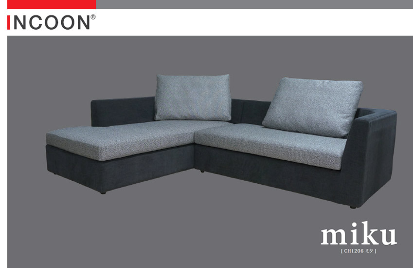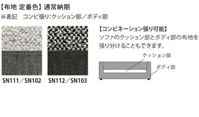 コンビネーション張りが映えるシンプルなデザインのソファ