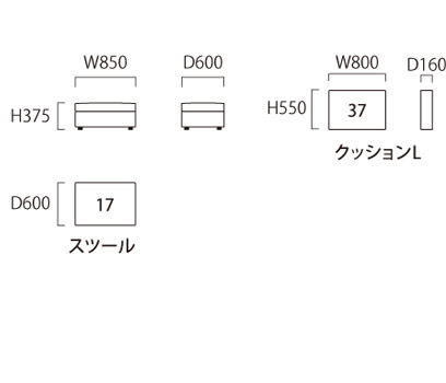 ■座クッション:ポリエステル綿 + ウレタンフォーム